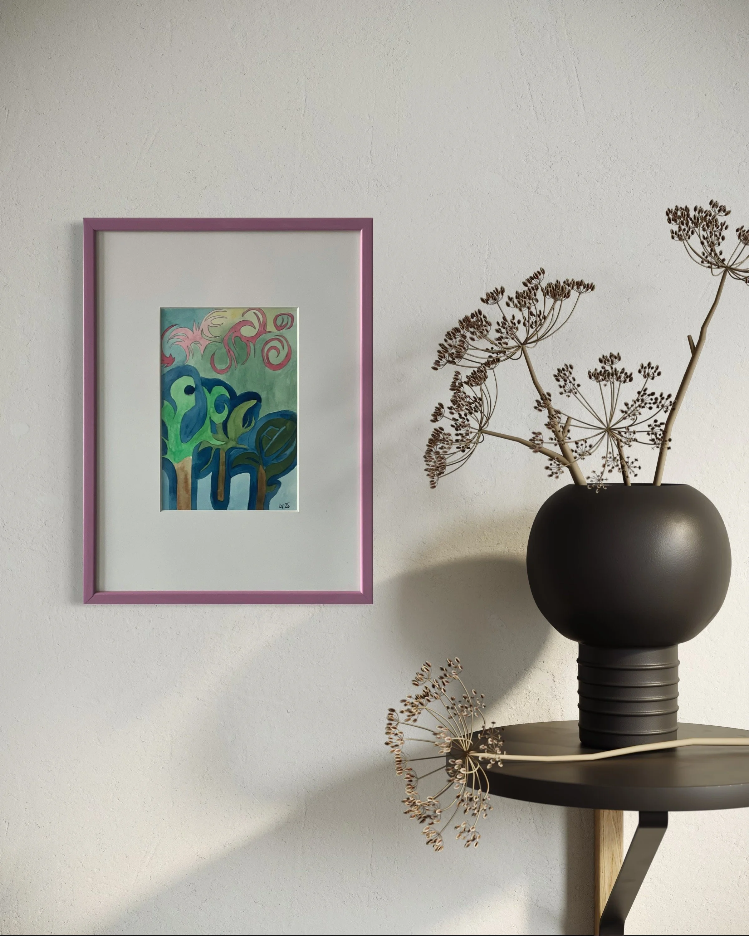 Forest dreams, 2025Lenette Ea Lyngfeldt VacherWatercolor painting / Aquarelle30x40 cm With color frame 2.000 DKK - 267 €